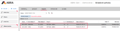 V získaných záznamech můžeme vidět oba skladové pohyby k dané skladové kartě, které nám ukázal zobrazený přehled neuzavřených pohybů ve skladové uzávěrce.