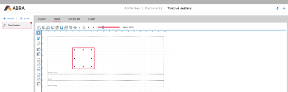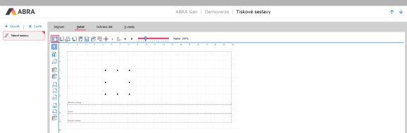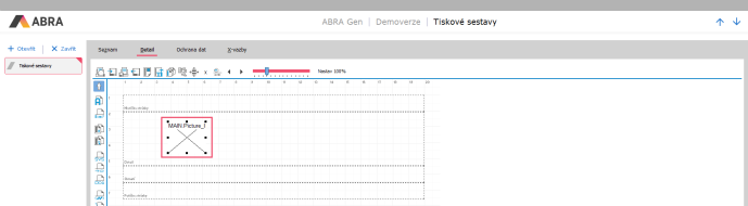 Nejprve si otevřeme nějakou tiskovou sestavu, kam budeme chtít obrázek vložit. Na pruhu, kam budeme chtít obrázek vložit, si uděláme prostor a klikneme na ikonu obrázku v levém svislém menu.