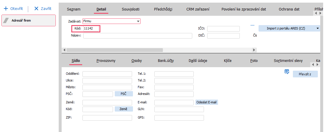V případě, kdy v agendě Adresář firem zadáváme kód firmy ručně, bez toho, aniž by se nám automaticky generoval je oprava velmi jednoduchá.