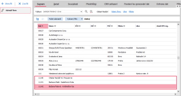 Abychom napravili situaci a navrátili řadu zpět na původní hodnoty, je nutné opravit všechny kódy založených záznamů mimo původní řadu. V našem případě tedy budeme postupovat tak, že kód firmy 11140 opravíme na 00040. Kód 11141 opravíme na 00042 (protože 00041 už má opravený záznam, který jsme opravili jako první) Opravené záznamy budou tedy vypadat jako na obrázku