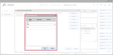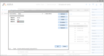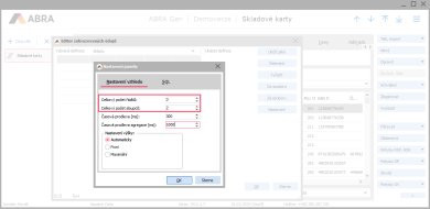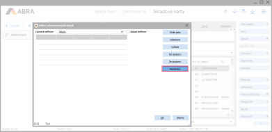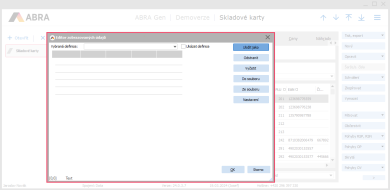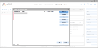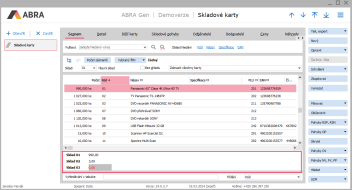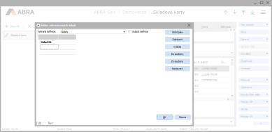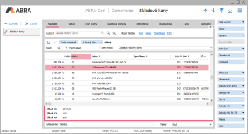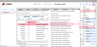 Panel definovatelných údajů pro skladové karty, kde je vyšší než nulové množství.