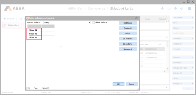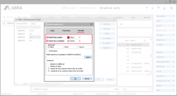 Panel definovatelných údajů pro skladové karty, kde je nulové množství, na Skladu 03 zobrazuje množství jinou barvou s odlišným barevným podkladem.