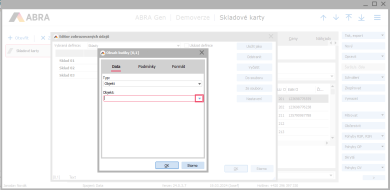 Následně se přepneme na záložku Data a zkopírujeme si Výraz z pole Objekt přes zkratku ctrl+C do schránky. Poté se přepneme do záložky Podmínky a zde přes šipku otevřeme pole Podmínka řádku.