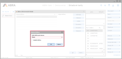 Nejprve si definici uložíme. Tlačítkem Uložit jako vyvoláme okno, kam napíšeme název, pod kterým budeme mít definici uloženou. V našem případě jsme ji pojmenovali Sklady.