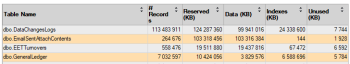 2. Přesné zjištění velikosti dat z agendy Provedené změny (tabulka DataChangesLogs)