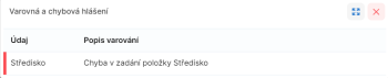 Kliknutím na počet chyb se zobrazí tabulka s detaily jednotlivých chyb, viz Varovná a chybová hlášení výše.