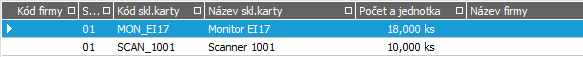 Zobrazený počet je 5 ks na hlavním skladu. Totéž získáme v zobrazení dílčích karet. Zobrazení dílčích karet k dané skladové kartě bylo probráno v kap. Skladové karty dílčí: