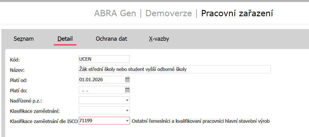 V systému ABRA Gen se nabízí mimo jiné tyto druhy pracovních poměrů:
