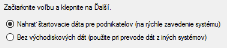 Príklad ponuky nahrania štartovacích dát