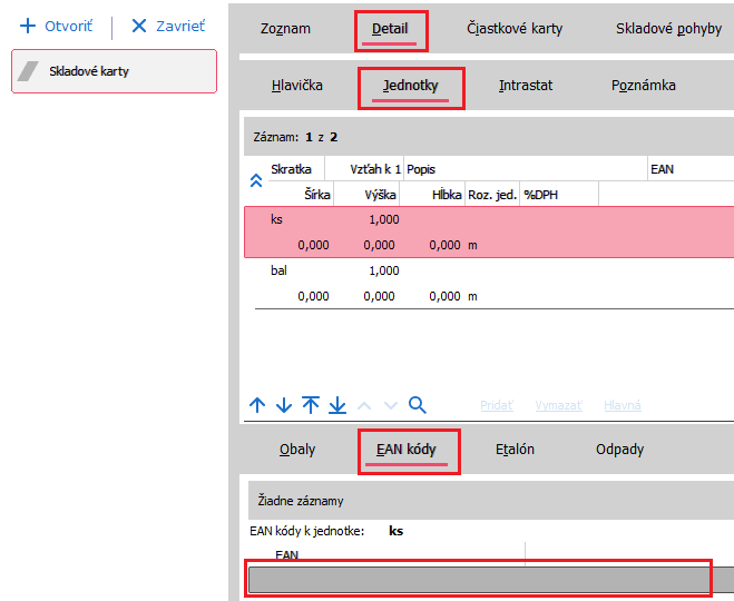 Vyplnění EAN na Skladové karty