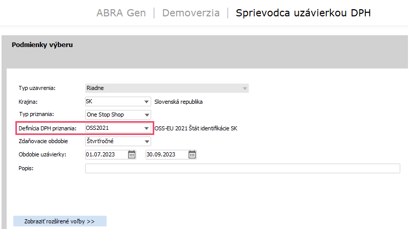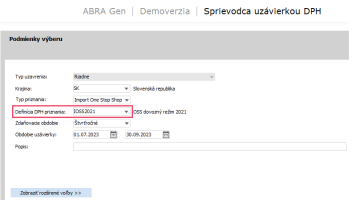 Od verzie 23.2 už systém ABRA Gen pri vytváraní novej uzávierky DPH typu vnútroštátny sám ponúka pre zvolené obdobie uzávierky správnu definíciu DPH priznania.