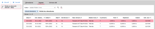 - Bola opravená chyba zdvojeného zobrazenia položiek v dolnej časti obrazovky pri obmedzení, v ktorých bola nastavená položka "Pohyby" na hodnotu "Všetky v skupine" alebo "Všetky za zvolený dátum účtovania".AG-1687