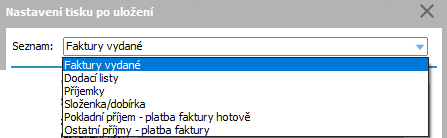 V agendě Faktury vydané máme chování po uložení dokladu nastavené na "Tisknout".