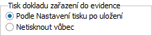 Funkcia Nastavenie tlače po uložení slúži na nastavenie, čo sa má vykonať po uložení záznamu v danej agende, tzn. či sa nemá vykonať nič alebo sa má záznam vytlačiť alebo vyexportovať a akým spôsobom. Ide teda o možnosť, ako vyvolať automatickú tlač/export záznamu, tu v závislosti od jeho editácie a uloženia.