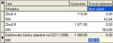 Čiže najprv sa vypočíta "pomer" platby voči nezaplatenej sume celého dokladu = 100/190. Najprv se vyriešia záporné riadky, ich suma je -1000,-, tzn. |