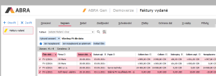 Príklad zoznamu, v ktorom je možné kliknutím triediť podľa stĺpcov Číslo dokladu, Dátum dokladu a Celkom bez dane. Podľa stĺpca Typ obchodu sa triedenie kliknutím nastaviť nedá. Aktuálne je zoznam roztriedený vzostupne podľa celkovej sumy. ABRA vzhľad.