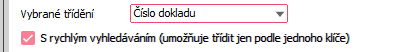 Třídění s rychlým hledáním, kdy jsou doklady seřazeny nejdříve všechny s pořadovým číslem 1, pak 2, 3, 4 atd. Pak zadáním hledaného řetězce např. FV-4/ se ihned dohledá první doklad začínající tímto řetězcem