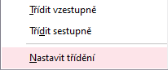 Lokálne menu vyvolané pravým tlačidlom myši nad nadpisom stĺpca, pri ktorom je možné prepínať triedenie poklikaním