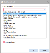 Po stisku tlačítka Vybrané třídění nebo vyvolání volby Nastavit třídění se zobrazí dialogové okno se seznamem klíčů pro nastavení třídění zde: