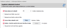 Příklad dialogu pro předvyplnění údajů vytvářeného dokladu typu Dobropis faktúry vydanej