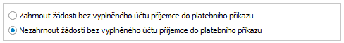 Doklady bez vyplneného čísla účtu príjemcu sú vynechané na základe voľby prepínača "Nezahrnúť žiadosti bez vyplneného účtu príjemcu do platobného dokladu".