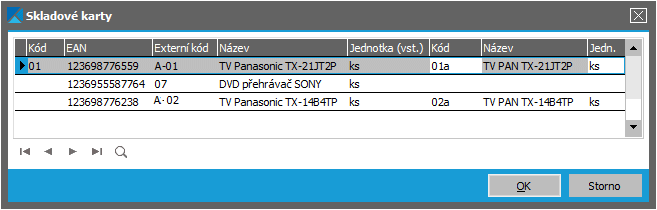 - podľa hodnoty ISDOC tagu <Item.CatalogueItemIdentification> (obsahuje EAN skl. karty) - ak tag nie je prázdny, tak v zozname skl. kariet hľadá kartu, ktorá má rovnaké EAN (StoreCard_ID.EAN). Pri hľadaní karty podľa EAN hľadá nielen podľa EAN hlavnej jednotky, ale medzi EAN všetkých jednotiek. Pritom opäť berie ohľad na skratku jednotky: z množiny všetkých kariet s rovnakým EANom (nezáleží na tom, ktorej jednotky) vyberie prvú, ktorá má hľadaný EAN uvedený pre jednotku s rovnakou skratkou ako má jednotka v importovanom ISDOC súbore. Ak taká neexistuje, vyberie prvú, ktorá sa zhoduje aspoň EANom, i keď ten je pre inú jednotku. (Zo zoznamu ostatných jednotiek skl. karty sa pokúsi nájsť jednotku s rovnakou skratkou ako v importe, ak taká neexistuje, jednotka zostane nepredvyplnená, používateľ ju bude musieť doplniť ručne, viď ďalej.) Ak neexistuje žiadna s rovnakým EANom, pokračuje v hľadaní podľa dalšieho údaja: