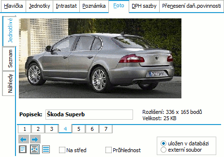 - Skladové karty - ako subzáložka Foto. Takto pridaný obrázok je zobrazený v číselníku Obrázky.