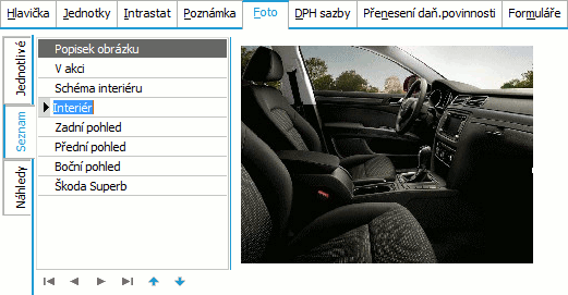 Príklad záložky Foto so spôsobem zobrazenia Náhľad. Aktuálny je tretí obrázok v poradí (Interiér).