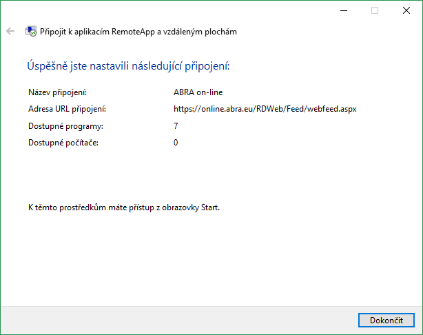 ABRA online - připojení do vzdálené aplikace z prostředí OS MS Windows