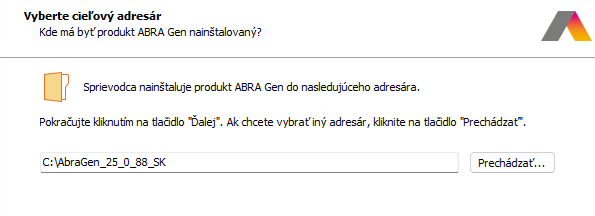 Príklad zadania adresára, kam sa má ABRA Gen nainštalovať