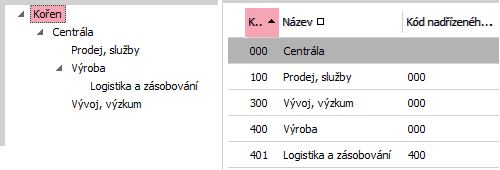 Príklad časti nadefinovanej štruktúry stredísk