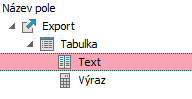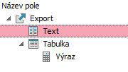 Výsledný súbor podľa predchádzajúcej definície exportu Pokiaľ nad prvkom Text vyvoláme funkciu Posunúť vľavo, prvok Text sa "vynorí" a už nebude vnorený pod tabuľkou. Bude vyhodnocovaný mimo záznamov z tabuľky. Po úprave poradia (posune hore), dostaneme: