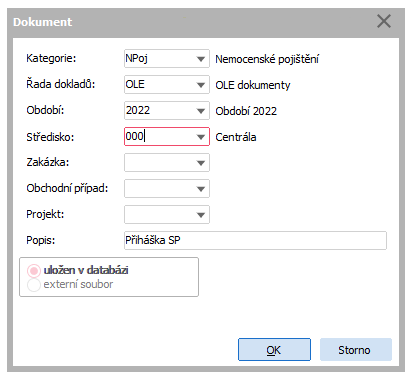 Obdobie Skratka označujúca obdobie, do ktorého je resp. bude doklad zaradený, tzn. do ktorého vecne patrí. (Ktorý údaj sa má v položke zadávať resp. zobrazovať, je možné nastaviť.) Povinná položka. Predvypĺňa a kontroluje sa podľa pravidiel uvedených v kap. Predvypĺňanie dátumov. Stredisko Slúži na predvyplnenie rovnomennej položky v hlavičke vystaveného Dokumentu. Predvypĺňa sa hodnotou nastavenou v rovnomennej položke v definícii kategórie dokumentu zadanej vyššie, ale samozrejme je možné zadať aj inú. Zadáte kód strediska alebo vyberiete z číselníka stredísk. (Ktorý údaj sa má v položke zadávať resp. zobrazovať, je možné nastaviť.)