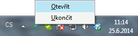 Príklad zobrazenia programu AbraOLE.exe v oznamovacej oblasti s miestnou ponukou.