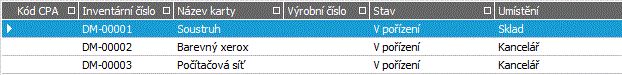 Pre výstupné formuláre typu zoznamy dokladov, zoznamy v číselníkoch a pod. platí, že na aktuálny záznam ukazuje ukazovateľ a ak je na ňom súčasne i fókus, je typicky zvýraznený odlišnou farbou:
