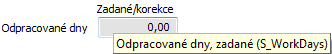 - V používateľsky definovateľných formulároch si pomocou tooltipu môžete zobraziť doplňujúcu informáciu k danej položke, čo môže byť aj názov položky v databáze resp. v definícii Business objektu. (Viď obsah položiek "Popisok položky" v definícii vstupného formulára). Využijete typicky u dodávaných vstupných formulárov (napr. v module Mzdy a personalistika), keď sa chcete uistiť, o akú položku vlastne ide.
