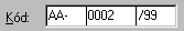 Prefix=AA-, telo=0002, sufix=/99