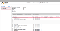Príklad licencovaných modulov. Zaktivované licencované celky sú začiarknuté. Dvojica čísel v tvare X/Y uvedená za každým licencovaným celkom teda udáva informáciu o licencii na sieťovú prevádzku ABRA Gen, viď ďalej.