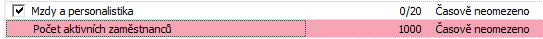 V horní části subzáložky je seznam licencovaných modulů a vlastností. Zde je vidět, které části systému jsou aktivovány a které ne (podle toho, jakou aktivaci váš aktivační klíč obsahuje), a informace o tom, jaká část z dané licence je již vyčerpána (např. jiní uživatelé mají spuštěné agendy z dané licencované části). V súvislosti s licencovaním budeme tieto časti systému označovať ako licencované celky alebo licencované moduly a vlastnosti: