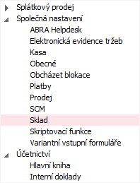Uzol Spoločné nastavenia obsahuje skupiny práv, ktorých hodnoty budú ovplyvňovať viac agend naraz. Uzol Účtovníctvo obsahuje skupiny práv, ktorých hodnoty budú ovplyvňovať len danú agendu účtovníctva.