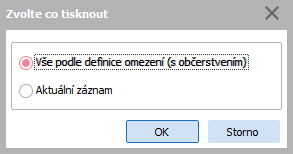 Voľba aktuálneho obmedzenia - lišta obmedzenia knihy jázd: