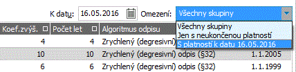Príklad filtrovania len za odpisové skupiny platné k zadanému dátumu