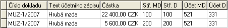 Pak se částka z MLD1 bude také rozúčtovávat přednostně podle údajů z výkonů v poměru výkonů 10:1, tj. částka hrubé mzdy 22400 vyčíslená z MLD1 (viz předchozí bod Ada) se rozúčtuje v poměru 10:1, tedy na 20363,64 Kč a 2036,36 Kč. Takže celkovo dostaneme v zaúčtovaní dokladu mzdovej uzávierky nasledujúce záznamy: