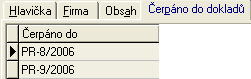 | Obsiahnuté subzáložky: | Hlavička | Firma | Obsah | Texty | Čerpané do dokladov | Formuláre |