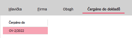 Subzáložka Čerpané do dokladov