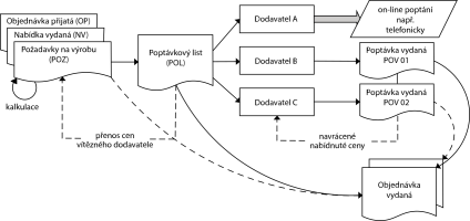 pre rôzne položky bude víťazným dodávateľom rôzny z dodávateľov - potom je nutné vystavenie vydanej objednávky je možné vykonať z dokladu Dopytový list (POL), pričom výsledkom bude toľko objednávok vydaných, koľko rôznych víťazných dodávateľov je na jeho riadkoch (viac ako jedna). Druhou možnosťou je postupné vystavenie objednávok z jednotlivých dokladov Dopytov vydaných (PPV), pričom objednávka sa vystaví len na tie položky, pre ktoré bol tento dodávateľ označený ako víťazný.