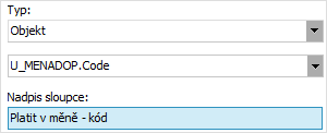 | Kód | Kód definovateľnej položky. Kód je prideľovaný automaticky programom podľa vnútorných pravidiel pri zadaní novej definície definovateľnej položky. |
