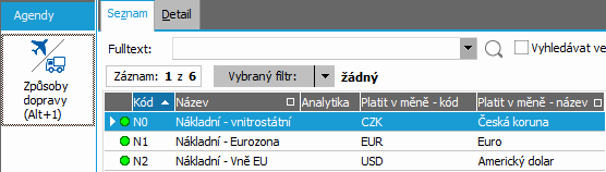 Ďalej sú v hornej časti záložky Detail k dispozícii nasledujúce položky: