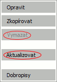 Příklad úpravy vzhledu agendy. Potlačení funkce Vymazat a přejmenování funkce Občerstvit na Aktualizovat.