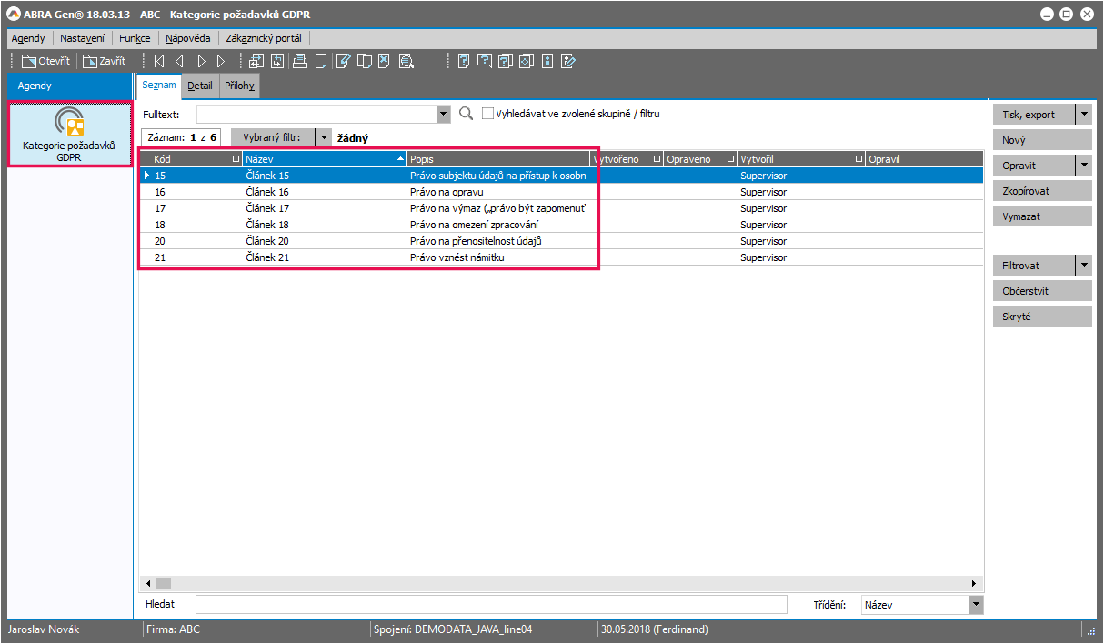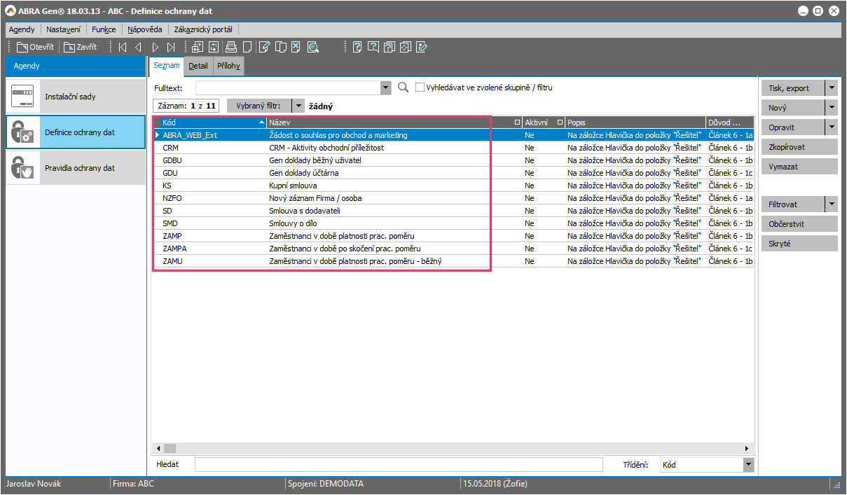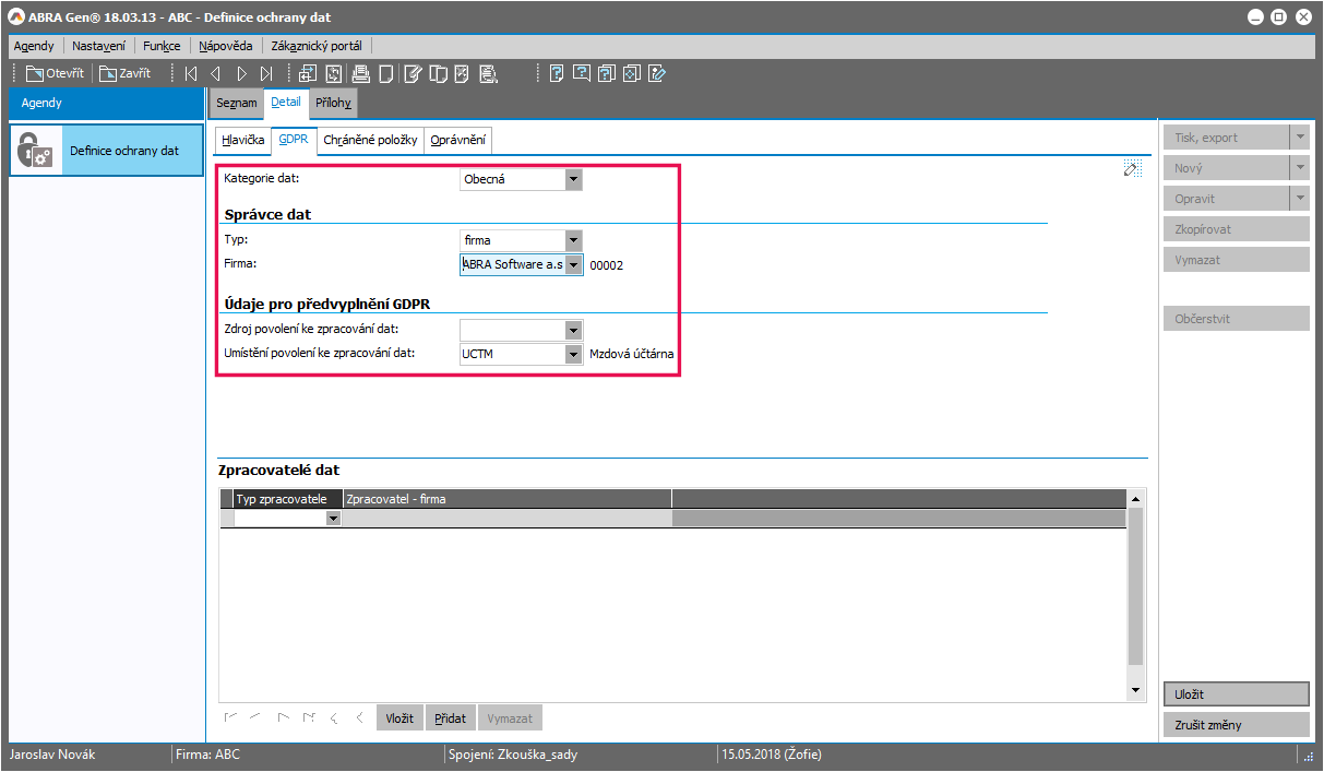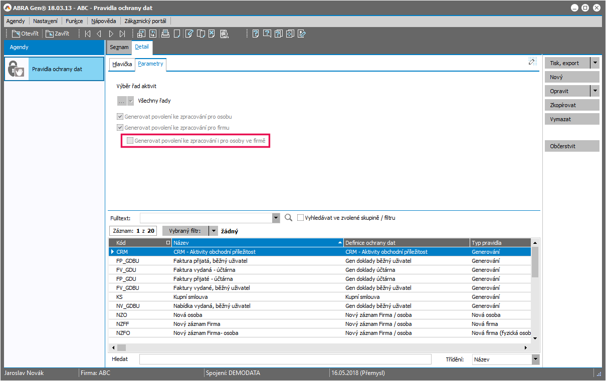 Ochrana dat, GDPR v ABRA Gen - 3.část - vybrané agendy přímo v ABRA Gen